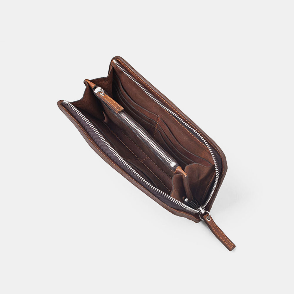 Roomy yet compact this wallet features a L-shaped zipper that allows you to open the wallet widely without risking to lose anything. Inside 12 credit card pocket sleeves placed on the sides, one zipped coin holder in the center and 2 bill compartments.