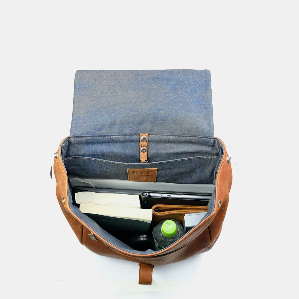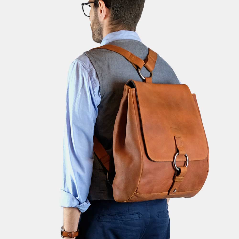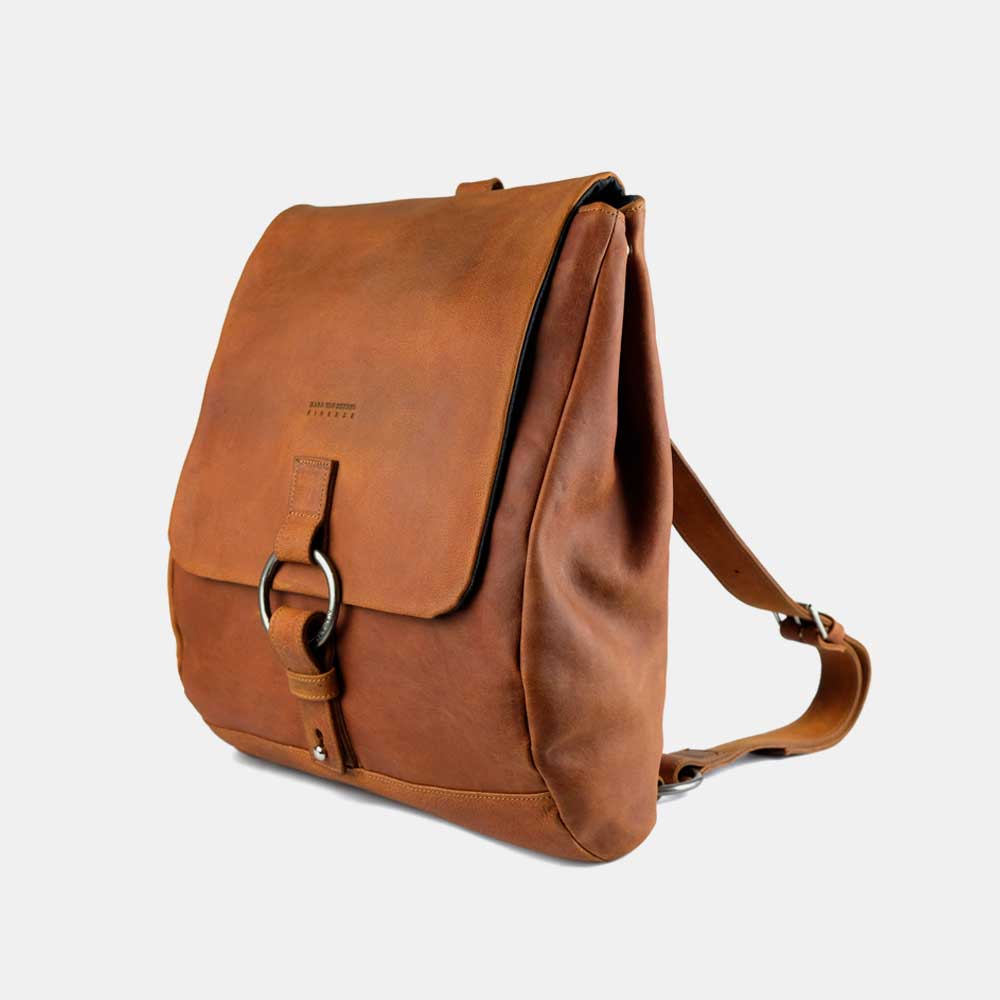 Both practical and appealing this iconic backpack is crafted with the finest vegetable-tanned cowhide leather. The backpack features 1 large inner compartment with a lateral pocket sleeve for your laptop. On the external part 2 zipped pockets placed one in the front (beneath the flap) and one on the back to keep anything you need at hand but still safe.