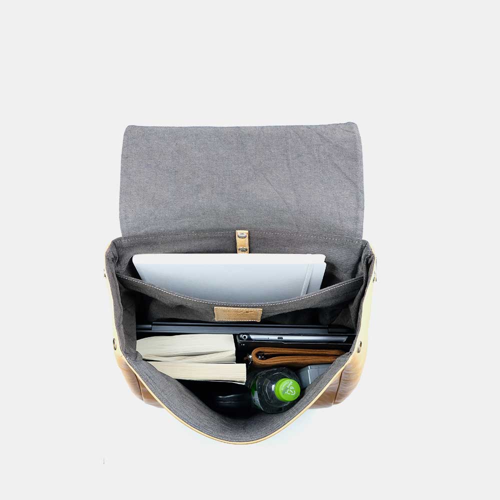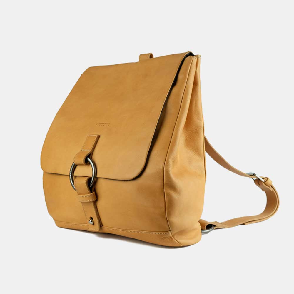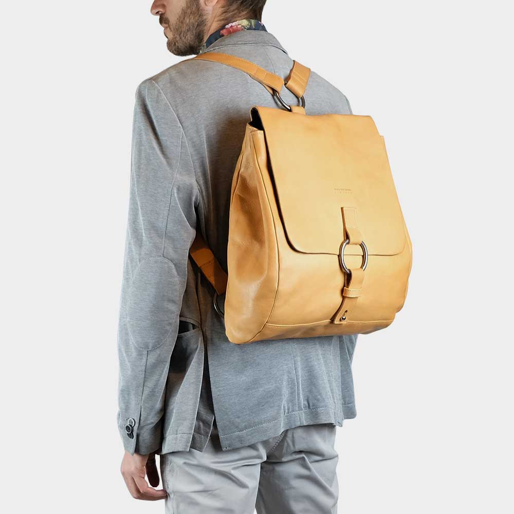 Both practical and appealing this iconic backpack is crafted with the finest vegetable-tanned cowhide leather. The backpack features 1 large inner compartment with a lateral pocket sleeve for your laptop. On the external part 2 zipped pockets placed one in the front (beneath the flap) and one on the back to keep anything you need at hand but still safe.