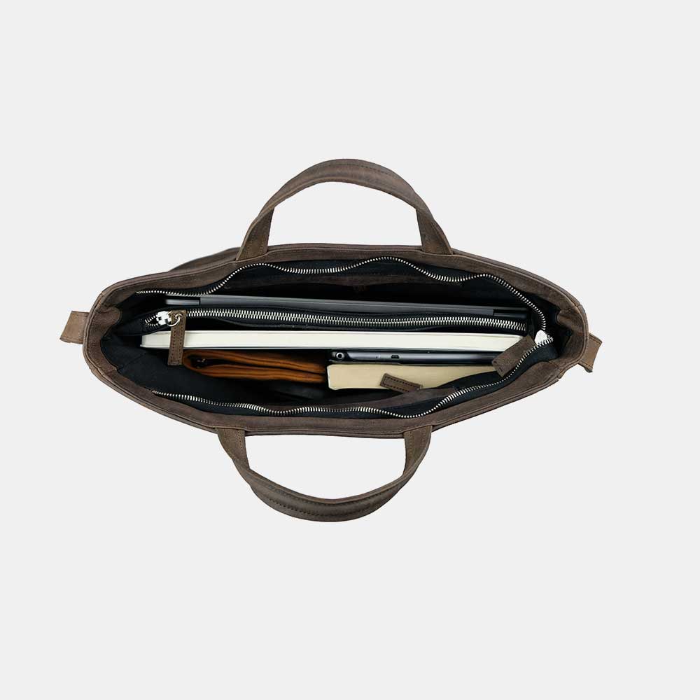 Thin and light this minimalistic briefcase is crafted with the finest vegetable-tanned cowhide leather. The briefcase features 2 wide compartments divided by a zip pocket sleeve for your tablet or laptop. On the inside a zip pocket on both sides for anything you need to separate.